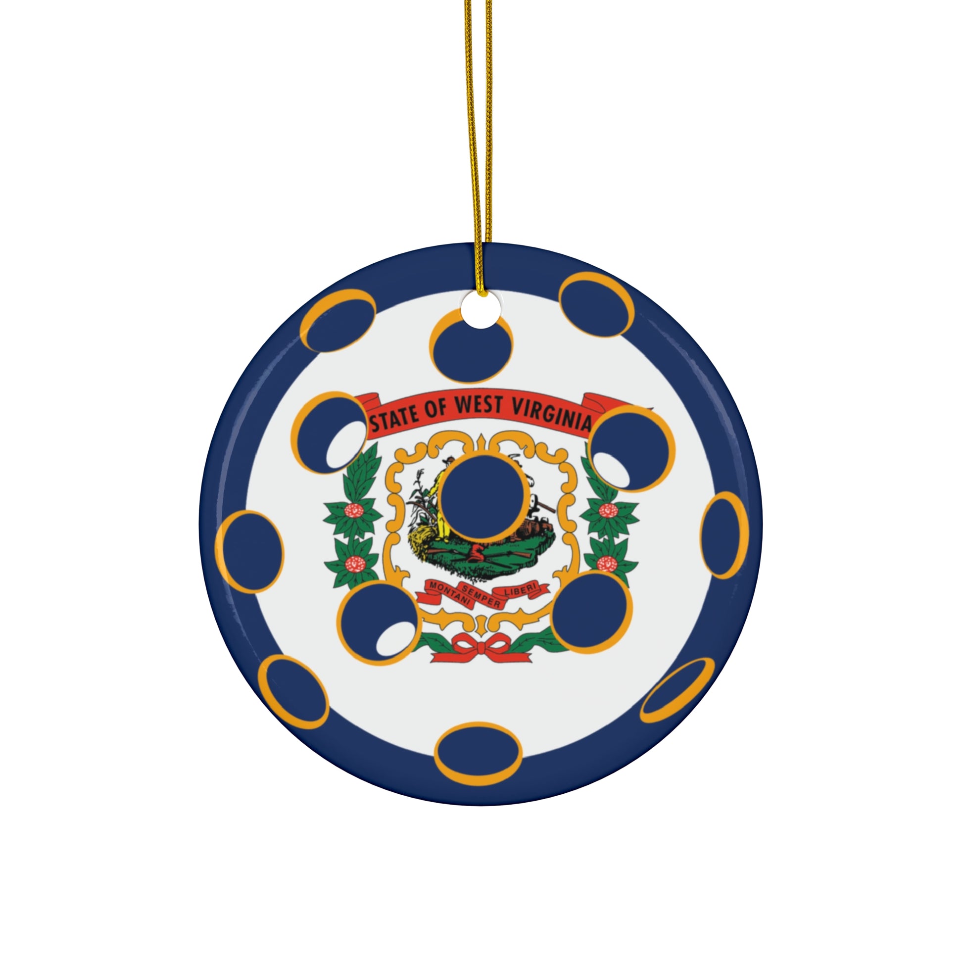 - Hole and gold-toned hanging string included